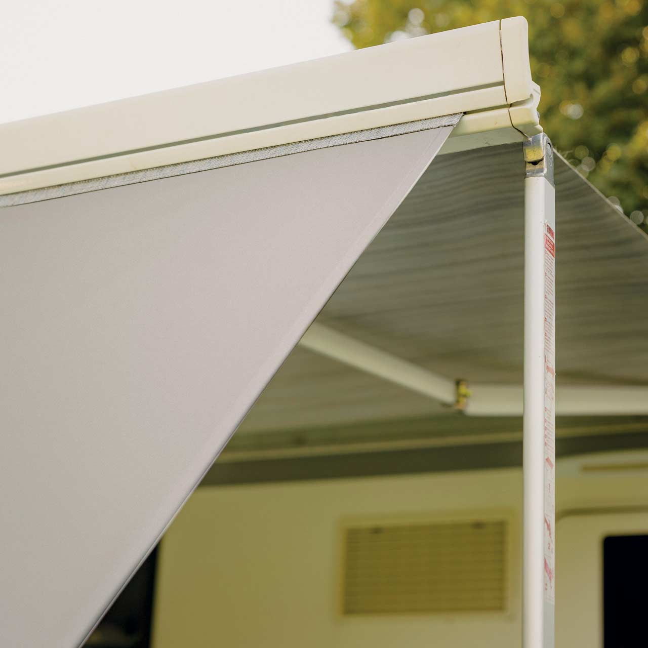 Parete in tessuto poliestere 100%, impermeabile, per una maggiore riservatezza nei periodi di sosta. Adattabile a tutti i tendalini con guida frontale e dotato di corde e picchetti per il montaggio.